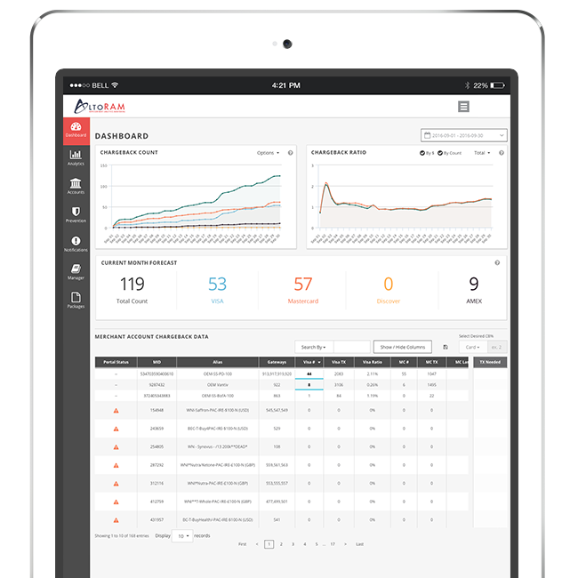 Quickly scroll through all your merchant accounts and customize the data tables to your desired metrics.